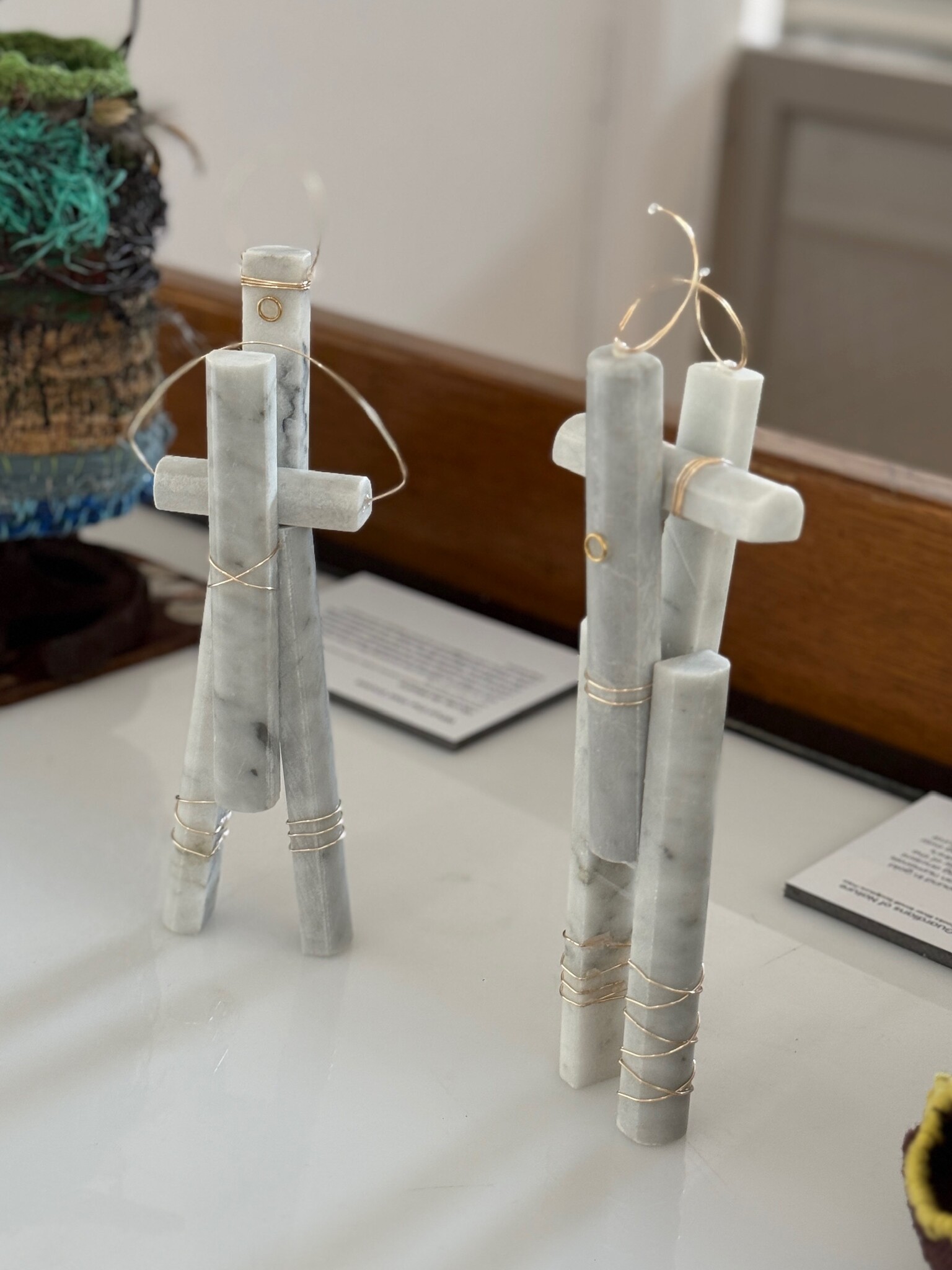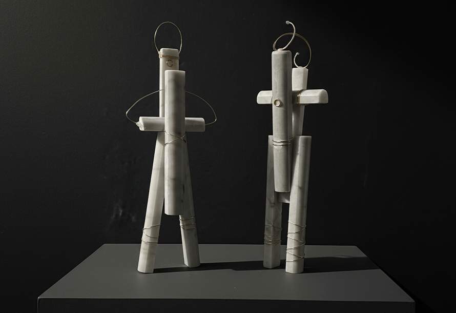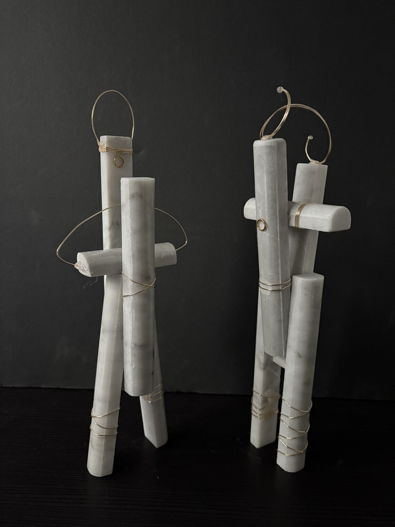 The two sentinels embody different rhythms of place. Sentinel 1 (X, III · XI) reflects the faster pulse of human crossings along the GreenWay, while Sentinel 2 (II, VII · XXX) follows the slower cycles of branching waterways and ecological time. Through marble’s permanence and wire’s delicacy, they express resilience, care, and protection for the fragile balance between humanity and the natural world.